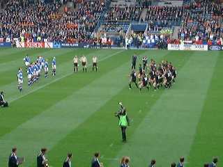 10/14(木)ハダ-ズフィールドでの、オールブラックスvsイタリアを観戦。キックオフ前のウォークライ。 |